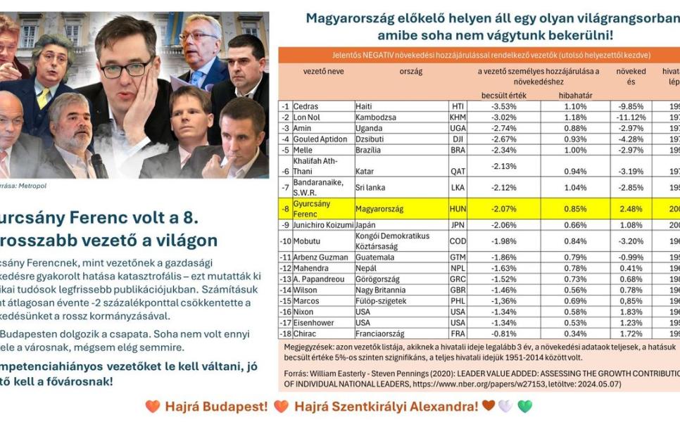 Magyarország 2024. május 11. mandiner.hu Szalai Piroska: Gyurcsány Ferenc a térségünkből egyedüliként bekerült a világ legrosszabb vezetői közé - Mandiner Forrás: https://mandiner.hu/belfold/2024/05/gyurcsany-ferenc-a-tersegunkbol-egyeduliken… Világhírű tudósok 650 vezetőt vizsgáltak.
