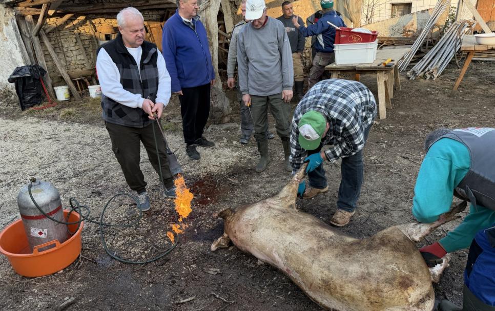 - Amikor ezt a házat, ahol most a disznó vágást tartjuk megvettem, elhatároztam, hogy nem bontjuk le. Amit lehet felújítunk és megőrzünk. Használható állapotban volt a kút, amit azóta már ki is tisztítottunk és tudunk onnét vizet venni és jó állapotban volt a hidas, ami annak idején a malacok helye volt. Úgy gondoltam, hogy akkor most a régi hagyományoknak megfelelően onnét húzzuk ki a disznót és apáink mozdulatait követve vágjuk le és dolgozzuk fel - mondta el az elnök. - Nagyon régen, amikor gyerek voltam, a nagyszüleimnél így zajlott a disznóölés. Minden alkalommal ez volt a legnagyobb ünnep az évben. Most hogy nagyjából én lettem a legöregebb a családban, úgy döntöttem, hogy egy ilyen hagyományőrző módon bemutatjuk, hogyan zajlott ez régen.