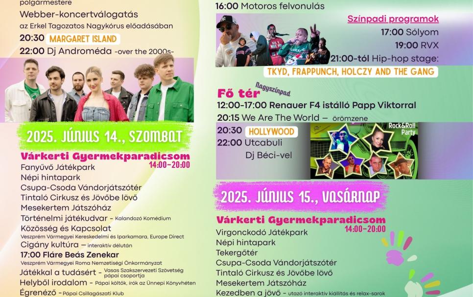 Programok 2025. június 14. papaimediacentrum.hu Pápai Játékfesztivál Forrás: https://papaimediacentrum.hu/kentha-event/papai-jatekfesztival-2/